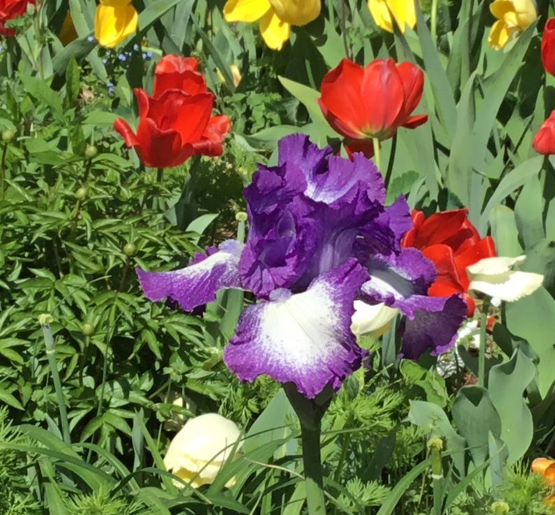 Bearded Iris (Iris germanica) is one of those pretty flowers we start seeing in springtime typically blooming from April until June.  They offer showy blossoms in an array of colors including pink, yellow, blue, violet, white, red and orange and are relatively easy to grow.  What they like is a nice sunny spot to grow, six hours of sunlight a day is best.  In North Carolina, planting bearded Iris during the months of July to September will allow the plant time to become established before winter.